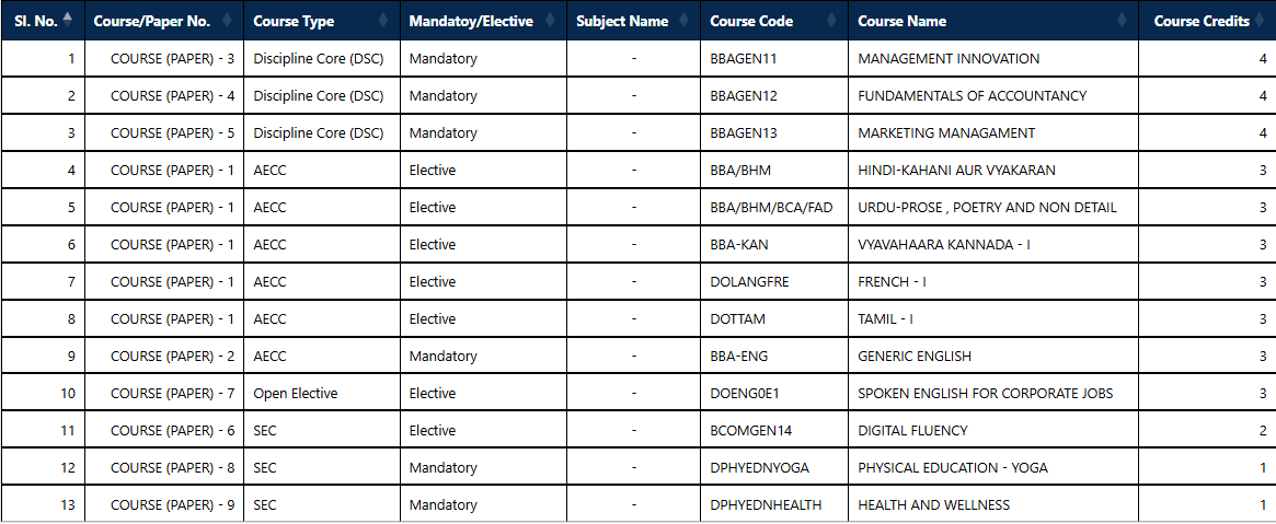 The B.B.A course offered in affiliation with Bangalore University is a three-year undergraduate program that offers students the ability to enhance their Managerial Capabilities, Critical Thinking Skills, Problem Solving Techniques and Decision Making skills. A Collaborative approach with Corporates, bridges the gap between Academic Knowledge with Current Industrial Practices to create competent workforce. The students are trained to gain in-depth knowledge and skills in Leadership, Entrepreneurship, Financial Literacy, Marketing Skills and Innovation.