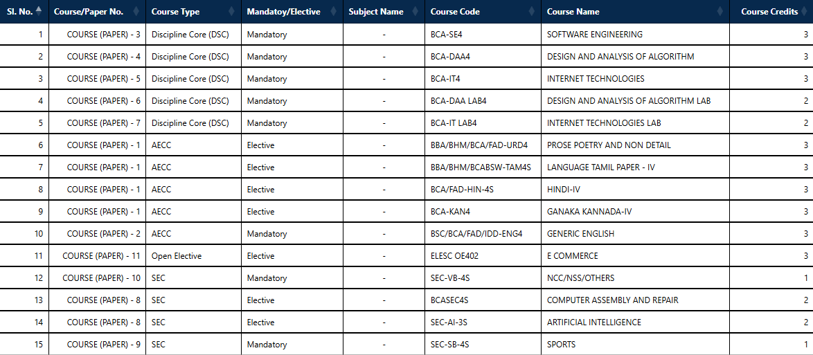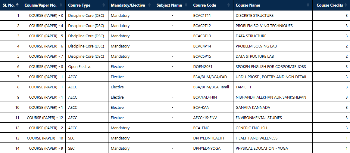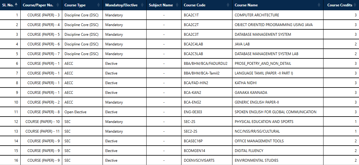 The B.C.A course offered in affiliation with Bangalore University is a three-year undergraduate program is designed to equip students with necessary skills and knowledge required to develop and manage computer applications. The curriculum is designed to cater to the needs of the industry, and students are given ample opportunities to work on real-world projects and gain practical experience. The course covers Artificial Intelligence, Internet of Things, Programming Languages, Software Development, Data Structures, Algorithms, Computer Networks, Database Management Systems, Managements Information Systems and Web Technologies.
